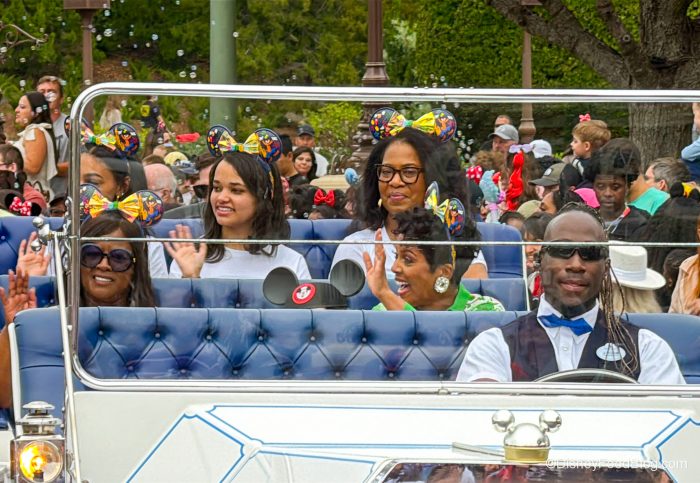 Before too long, we got to see the Hall kick off the parade — she was in a special Magic Kingdom parade vehicle with some friends waving to fans.