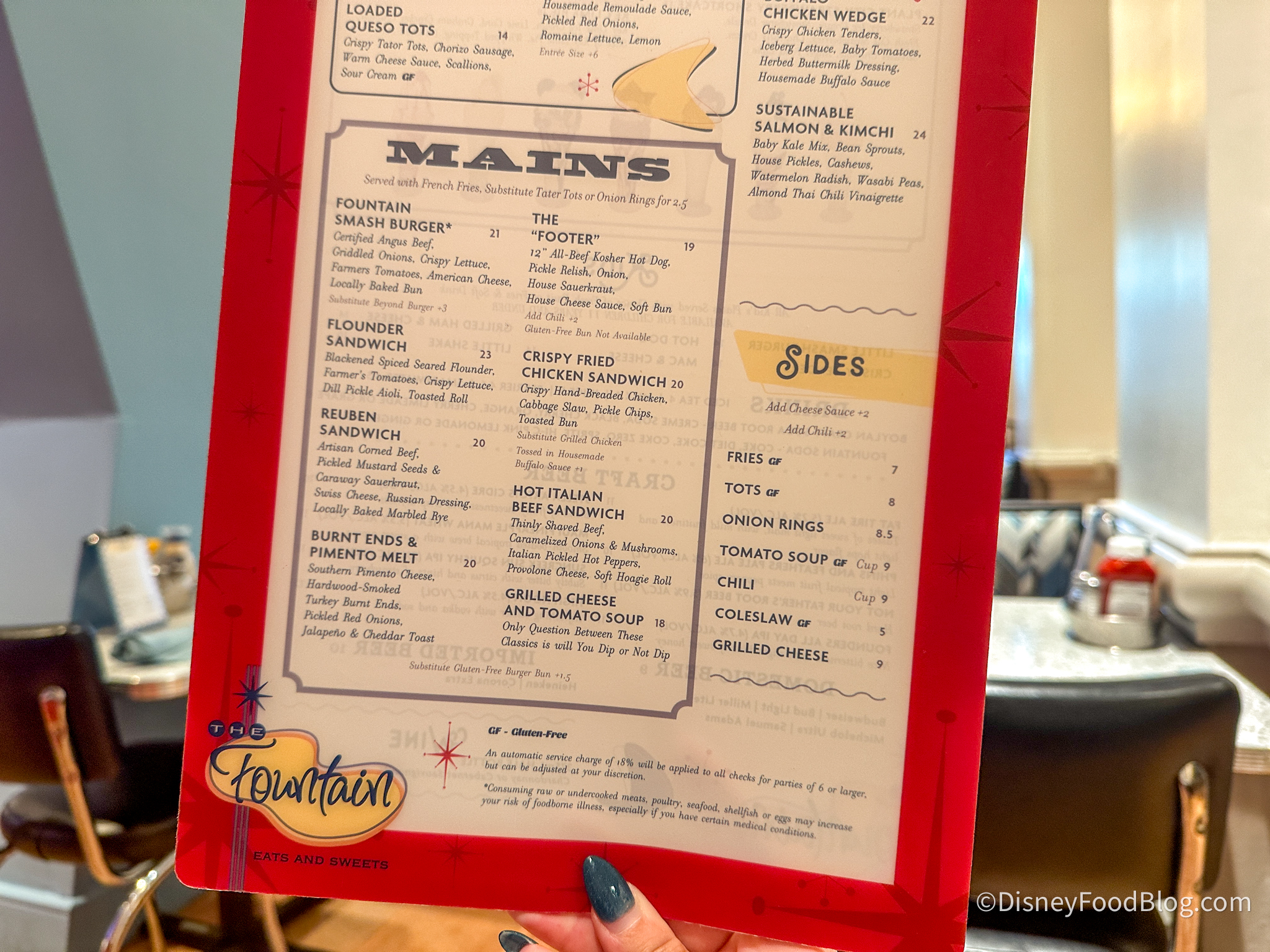 Oh, look. As a vegetarian family we have one choice in the “Mains” category… Grilled cheese sandwich, and tomato soup. We will be sure to not go there. Come on Disney there’s a lot of vegetarians, and we don’t just eat salad.