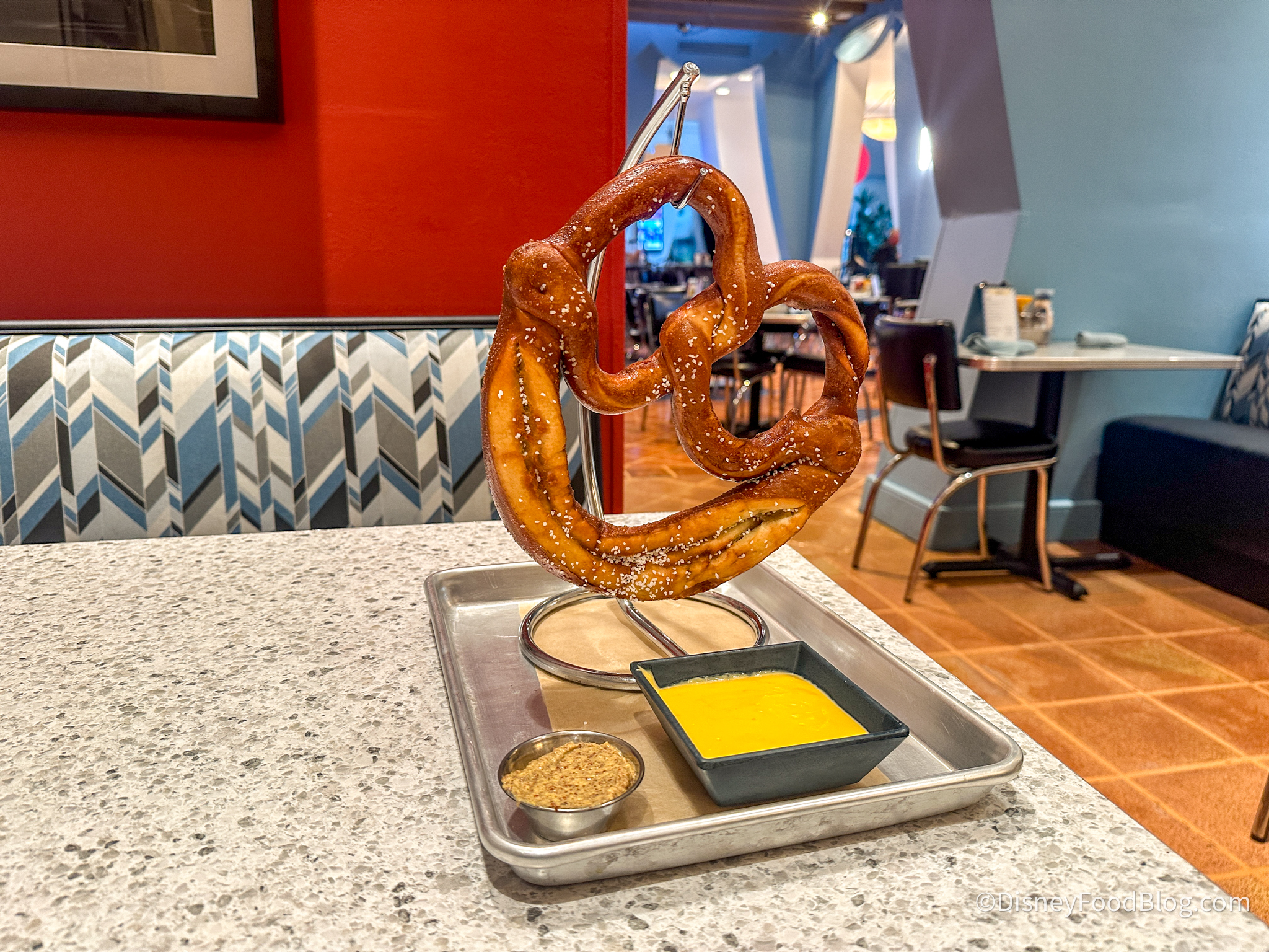 The last time we got these they were small pretzel bites, which we did enjoy, but we were a big fan of the massive pretzel as well! This cheese is similar to the cheddar cheese you’ll get with a Mickey pretzel in the parks. We loved that it was crispy on the outside and still soft on the inside, and it was perfectly salted. The switch between the small pretzel bites to the big pretzel was a bit of a shock to us, but not in a bad way! We think this is a great shareable appetizer that will easily satisfy the whole table.