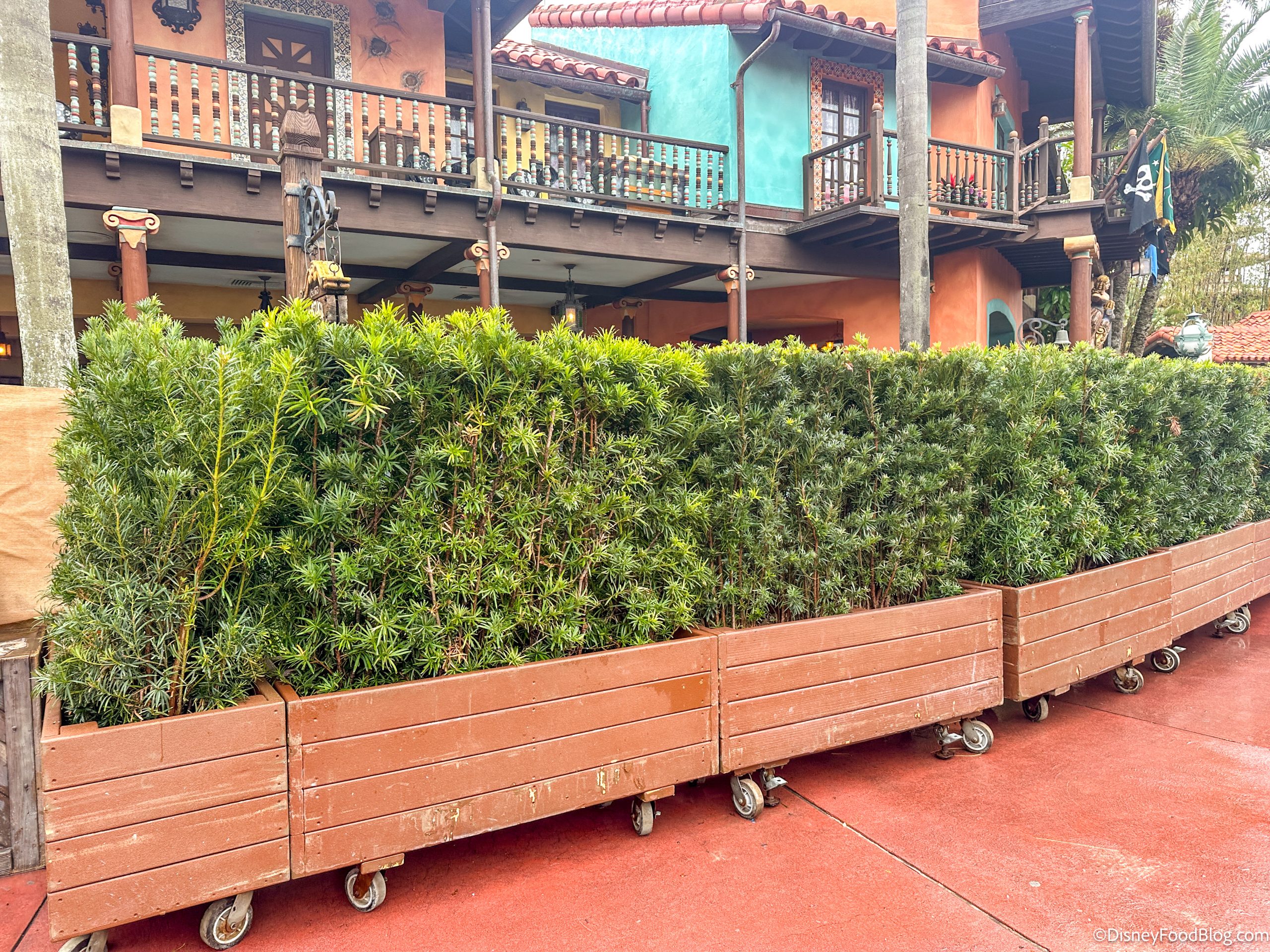 However, there are now shrubs up around the dining area of the restaurant, and work is being done. We don’t know exactly what is being done, but we will keep you updated if we learn more!
