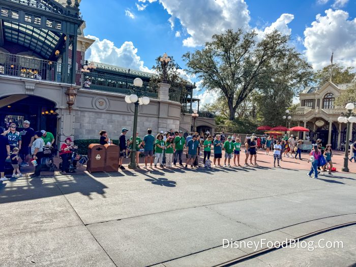 Magic Kingdom is crowded today with seas of green! In case you missed it, last night the Philadelphia Eagles beat the Kansas City Chiefs in the 2025 Super Bowl in New Orleans. Following the fun Disney tradition, Jalen Hurts, the Eagles quarterback, told us after his big win, he was going to Disney World and it seems like the fans followed him.