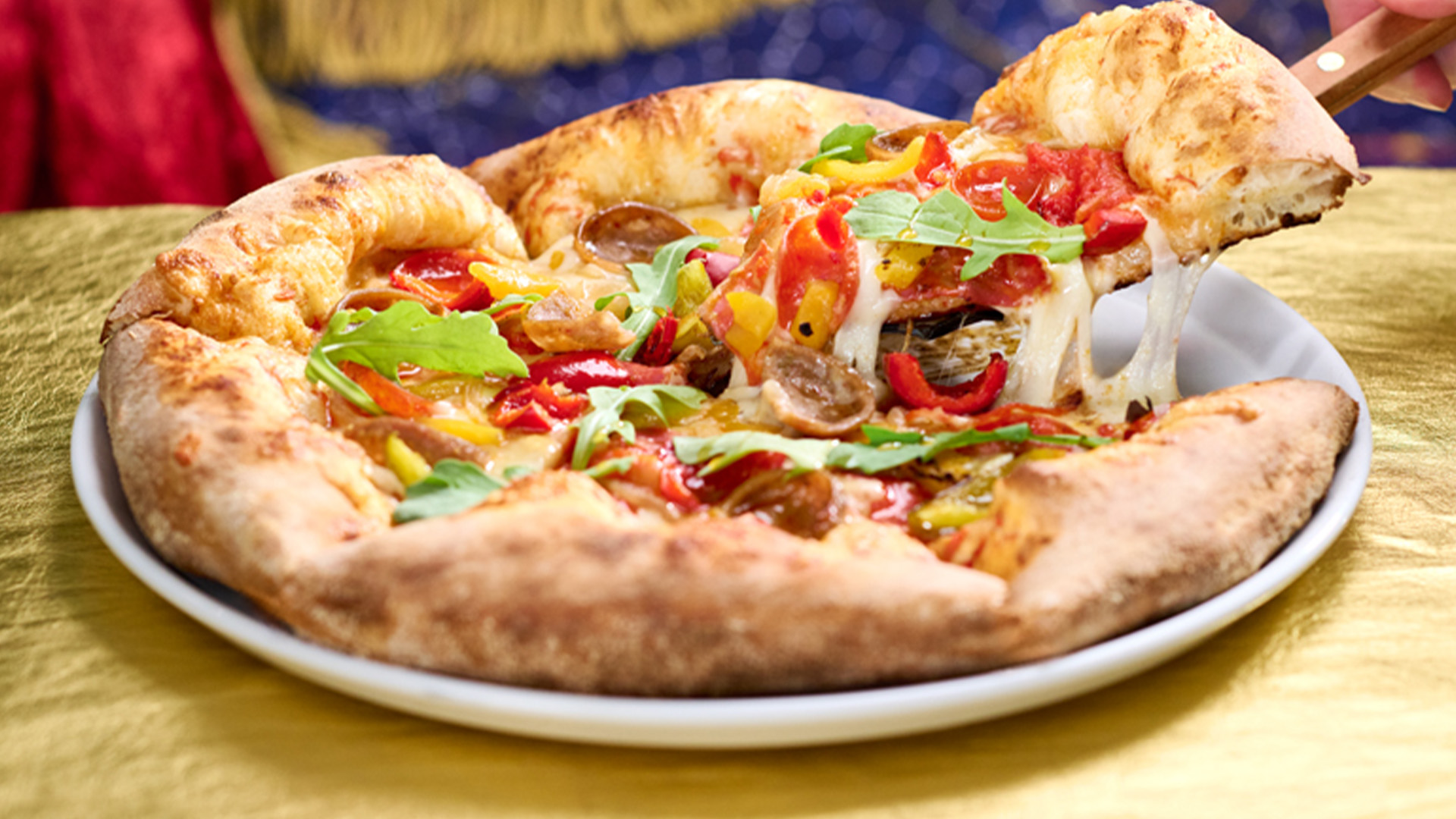 - A Trip to Vesuvio (Pizza Moon) – Enjoy a blend of fromage de lune, pepperoni, fennel sausage, roasted peppers and caramelized onions. Topped with cherry peppers, Calabrian chili and fresh arugula. A drizzle of hot honey tops it off.