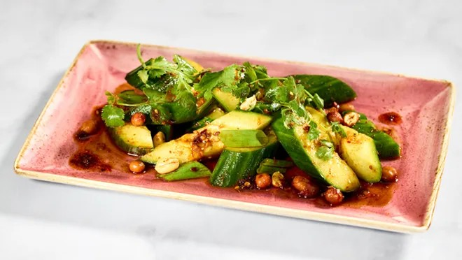 - Smashed Cucumbers (The Blue Dragon Pan-Asian Restaurant) – with cilantro, peanuts, and Sichuan spice.