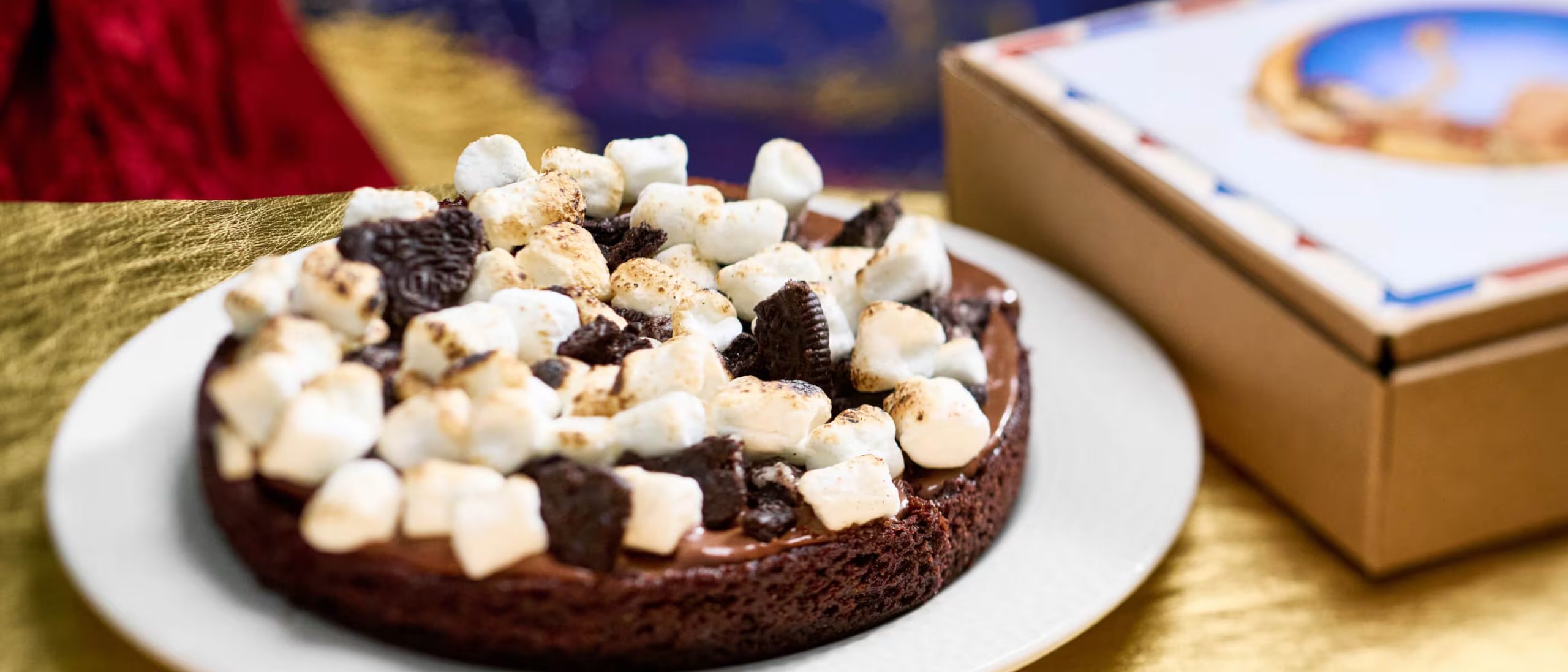 - Brownie Eclipse (Pizza Moon) – Dip into this warm gooey brownie with a tasty chocolate hazelnut spread and topped with crushed chocolate and creme sandwich cookies.