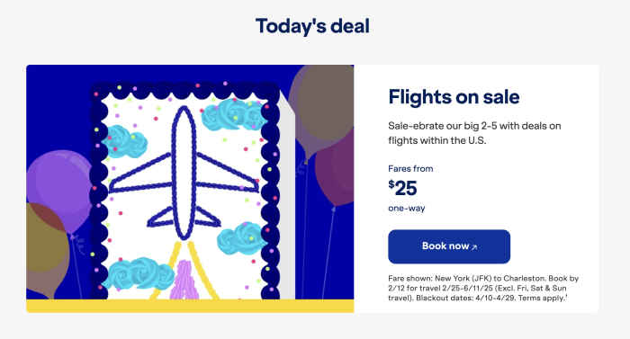 On Tuesday, February 11th, flights are on sale around the U.S. for as little as $25! These flights must be booked by February 12th to get this silver birthday deal and they must happen between February 25th, 2025, and June 11th, 2025.
