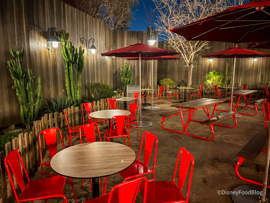 Lucky for us, Disney must have listened because that’s exactly what happened over in Cars Land at Disney California Adventure. We recently saw the updated ordering counter at Cozy Cone Motel, and now a new seating area has opened up to go along with that change!
