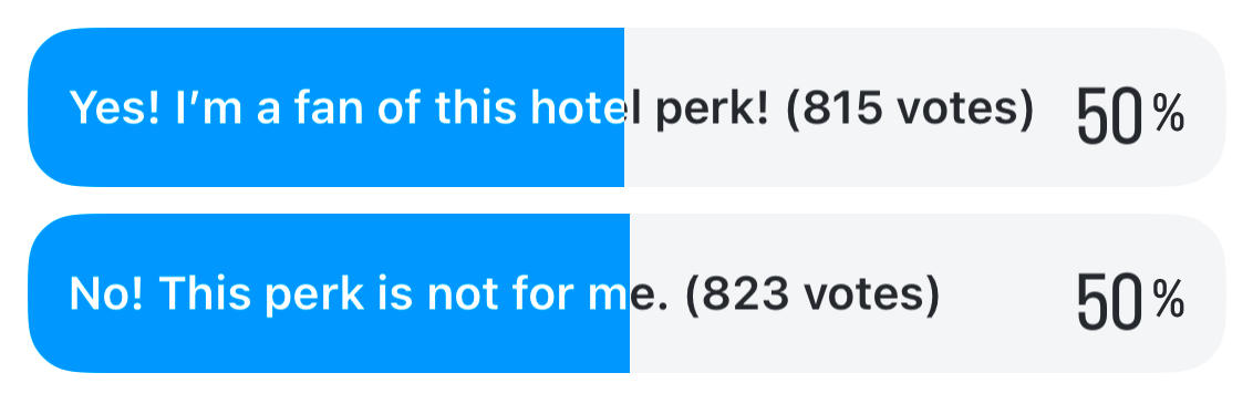Now, you were basically split right down the middle into one of two camps: “Yes! I’m a fan of this hotel perk!” and “No! This perk is not for me.”