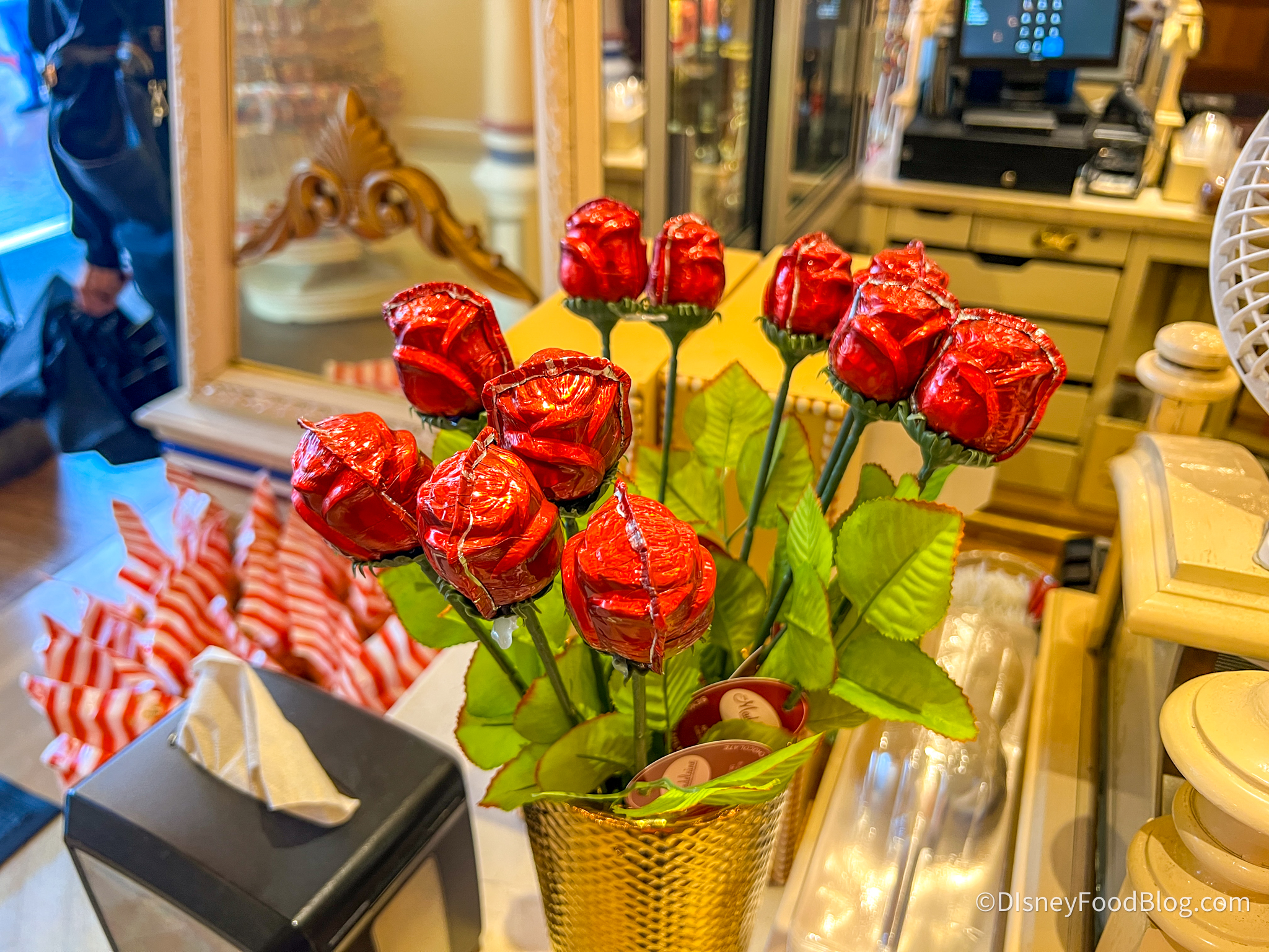 Candy Palace on Main Street, U.S.A., has some of our favorite treats at Disneyland, and they just added some Chocolate Roses to the lineup for Valentine’s Day! This realistic-looking rose is perfect to give to your sweetheart and at the happiest place on Earth.