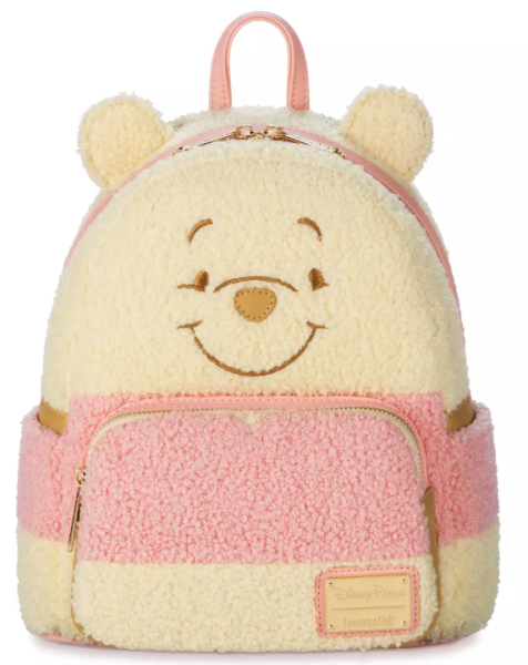 No set is complete without the matching Loungefly mini backpack to bring it all together! Pooh’s iconic round face and tiny ears are prominently featured on the bag’s front design as well as his signature red cropped shirt. The rest of the bag is decked out in a gold fuzzy pattern to fill out the rest of his body which even extends to the bag’s two side pockets.