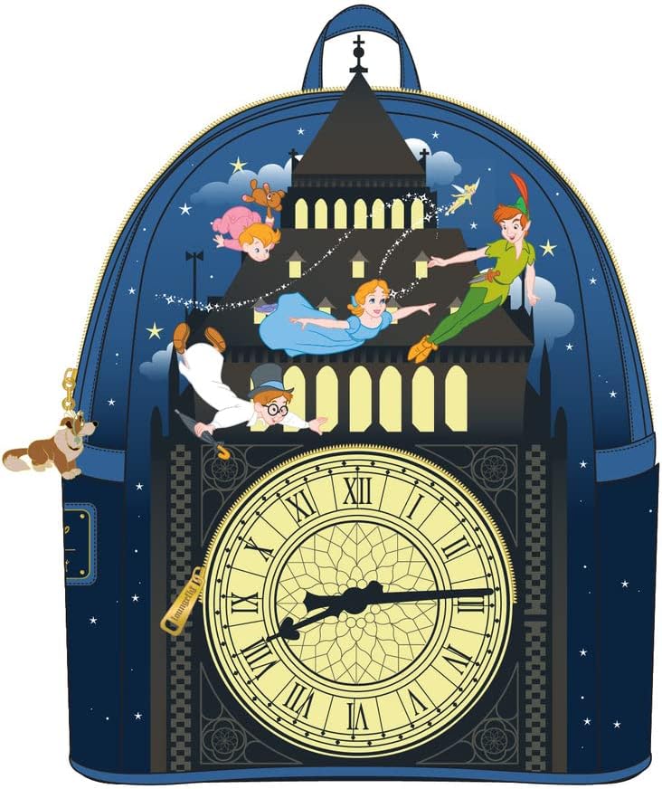 The Loungefly Peter Pan Glow Clock really stands out with its Big Ben clock front pocket — and peep that adorable Nana charm!