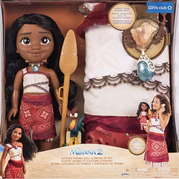 This play set from Moana 2 includes a Moana doll and Hei Hei. It also comes with a dress-up costume to match Moana! It is marked down to just under $28 when it was originally $50!