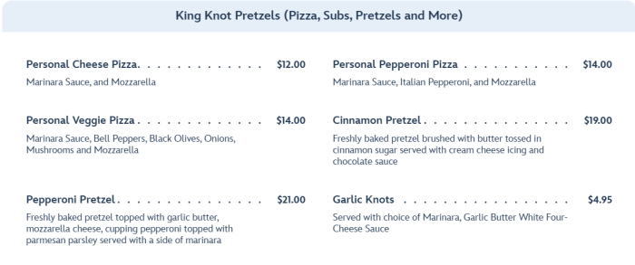 But you don’t want to miss out on the King Knot Pretzels, because YUM.