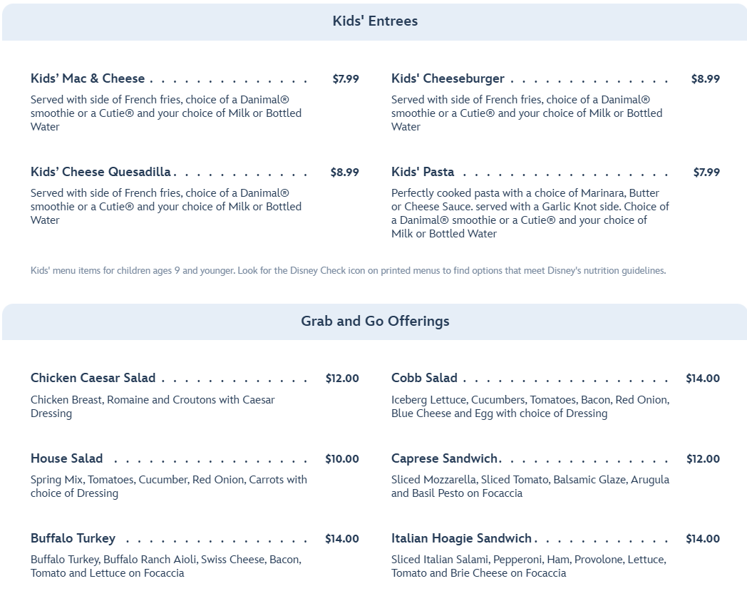 There’s also a Kid’s menu, as well as a Grab and Go menu.