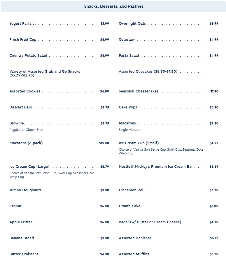 The restaurant is open for breakfast, lunch, and dinner. If you’re looking for a resort refillable mug, this is where you would pick it up (and get your refills). The lunch and dinner menu includes a variety of sandwiches and sides.