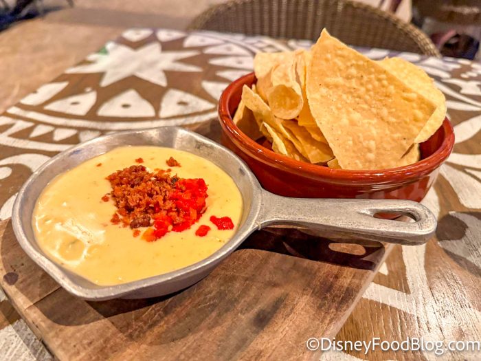 Overall, this was a GREAT value and it’s fun! One glass of sangria would have cost us $15.50, with two glasses costing us over $30. The flight split up over 4 different sangrias essentially gave us the same 2 glasses for $23, resulting in a fairly decent savings. It’s also easily sharable whether you’re tasting them all or choosing to divide them among yourselves. It was fun to taste, and pretty to look at, and we had a great time talking to our server about each of them and discussing which one we liked the best and how to taste them. We’re also BIG fans of the vegan Roasted Corn Dip and the creamy White Queso Dip you can snag while you’re stopping by for light bites, and this would be a fantastic addition to grab to enhance your meal at a great value.