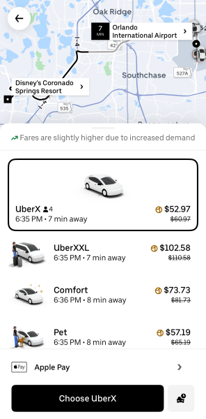 You can take a shared shuttle like Mears Connect, use a rideshare service like Uber or Lyft, opt for a luxury private car or limo service, rent a car, hop on the Lynx bus for the cheapest fare, or check if your hotel offers a shuttle service. Here’s the full list:
