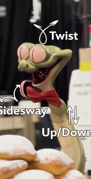 Her favorite figure to work with was Juju, Mama Odie’s seeing-eye snake. This figure has four main functions: up and down, twist, and sideways.