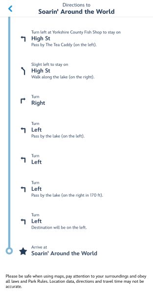 This feature works just like your favorite GPS apps but is tailored specifically to Disney World. You just open the map, search for where you want to go, tap on the location, and hit “Get Directions.”