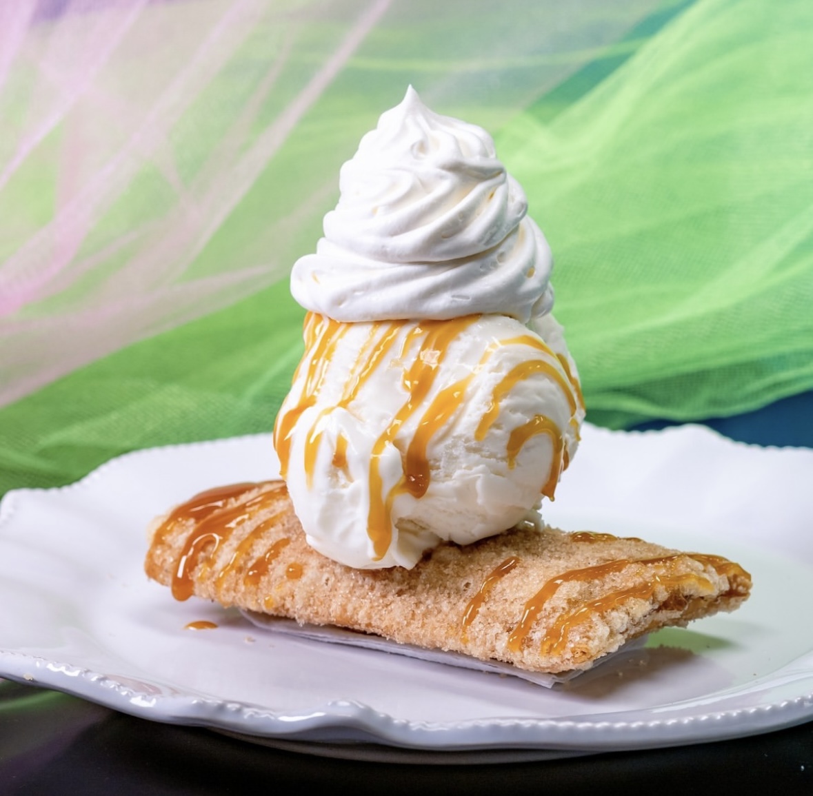 We’ll start with the Fried Apple Pie Sundae, which will be available at Gibson Girl Ice Cream Parlor. This treat is fried apple pie served with vanilla ice cream, spiced caramel, and whipped cream.