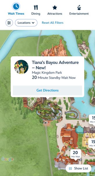 At the Magic Kingdom, however, Tiana’s Bayou Adventure experienced a delayed opening, which was not ideal for its first day without a Virtual Queue. The lines were backed up but finally, at 9:31 am, the attraction was back up and running. Despite the delay, however, the ride was posted at just a 45-minute standby wait time.