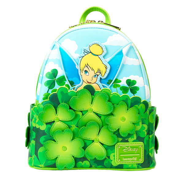 First up, we have the classic Loungefly mini backpack with a Tinker Bell clover design.