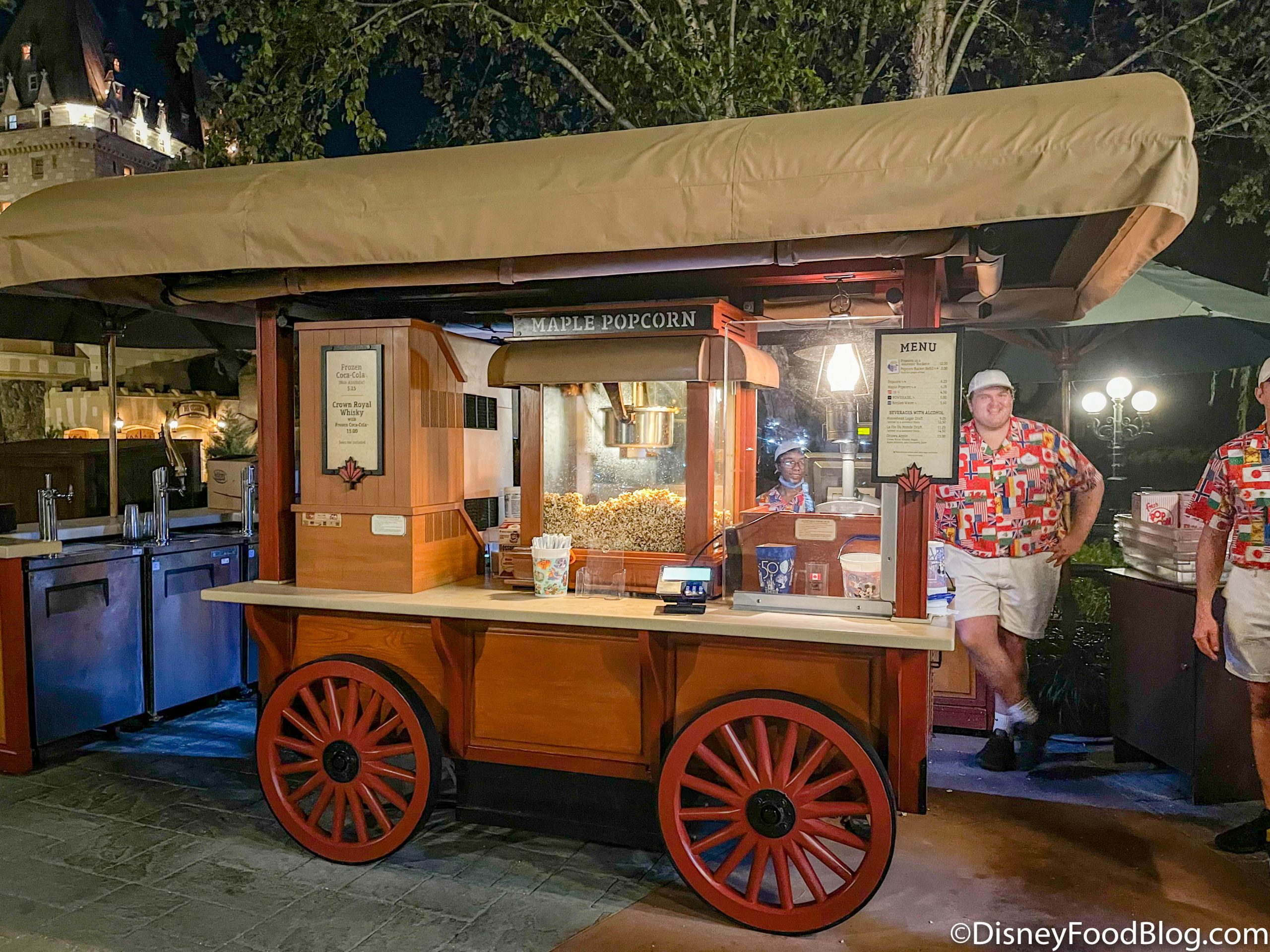 Just like in past years, the free snacks included with admission were Mickey Premium ice cream sandwiches, strawberry bars, bottled sodas, buttered popcorn, and, our personal favorite, maple popcorn in Canada!