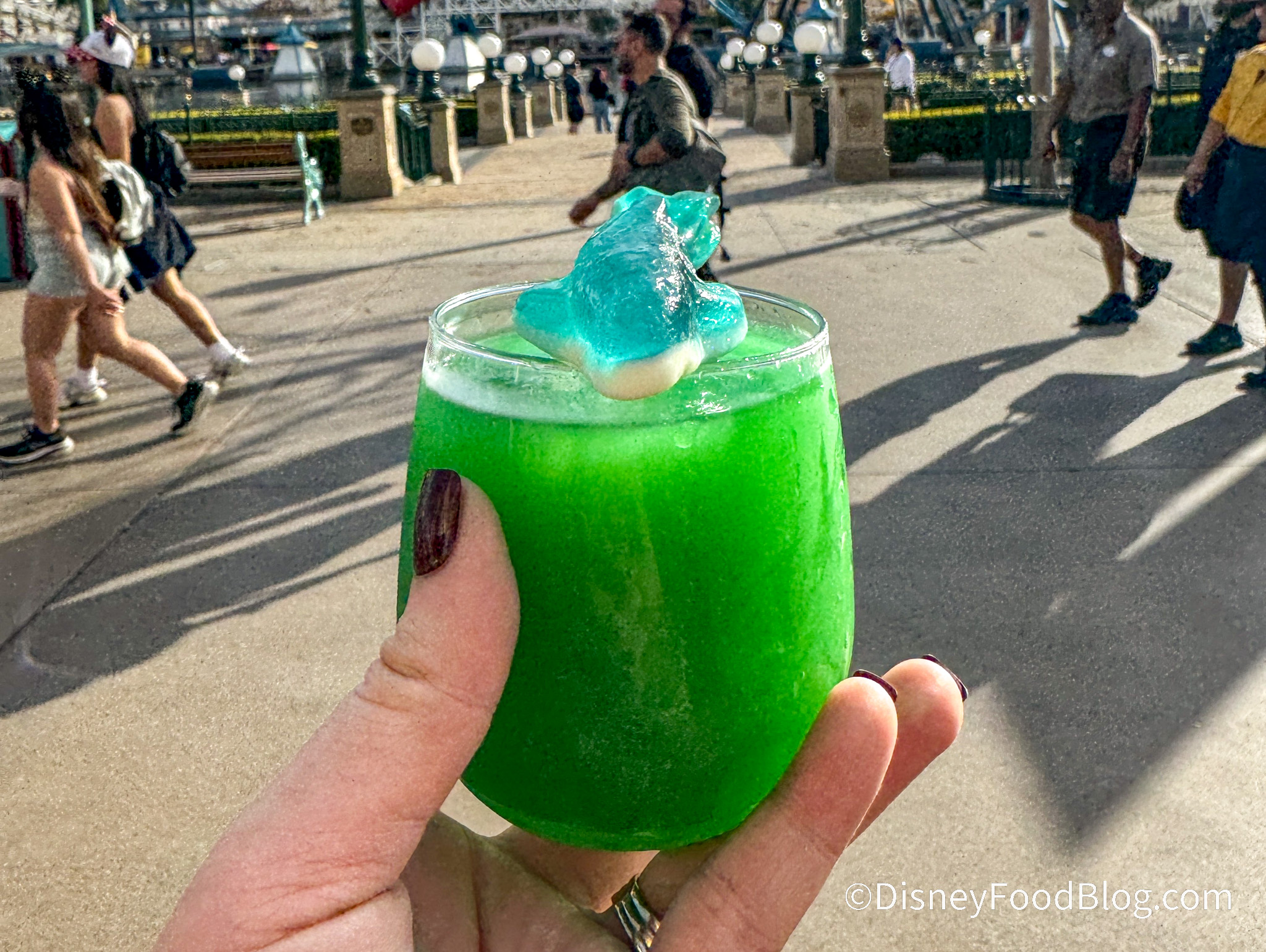 This is by far the sweetest cocktail we’ve ever had in California Adventure, and it tastes like a melted sour apple popsicle.