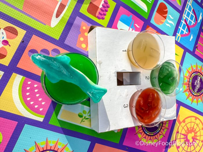 Another drink at this booth was the Green Apple Slush Cocktail for $18.50, which was a bit too wild for us! The drink is made of Green Apple BeatBox®, blue curaçao syrup, melon liqueur, kiwi purée, and lime juice and is topped with a gummy shark.