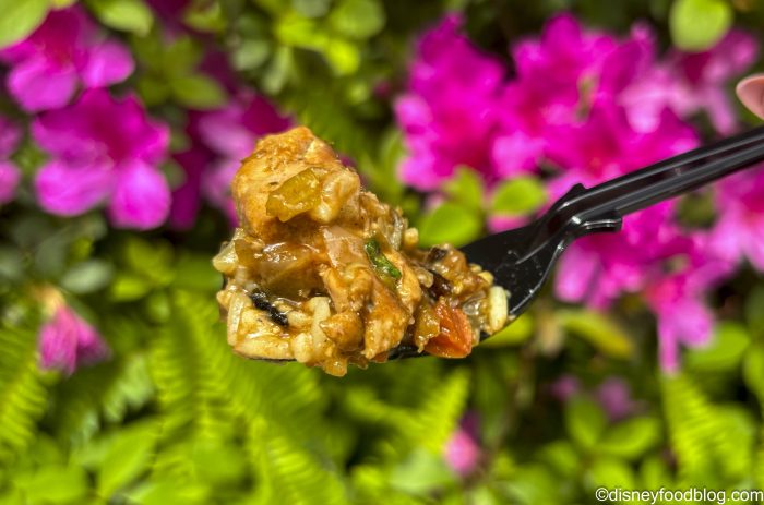 Why? Because it’s home to the Magnolia Terrace Outdoor Kitchen, one of the Festival’s Outdoor Kitchen Food Booths! The Food Booths join the Garden Rocks Concert Series, the Garden Graze food crawl, the stunning Disney topiaries and more as part of EPCOT’s spring festival. And right now, we’re checking out Magnolia Terrace so we can bring you our complete review… just like we’re doing with every single Outdoor Kitchen at the EPCOT Flower and Garden Festival!