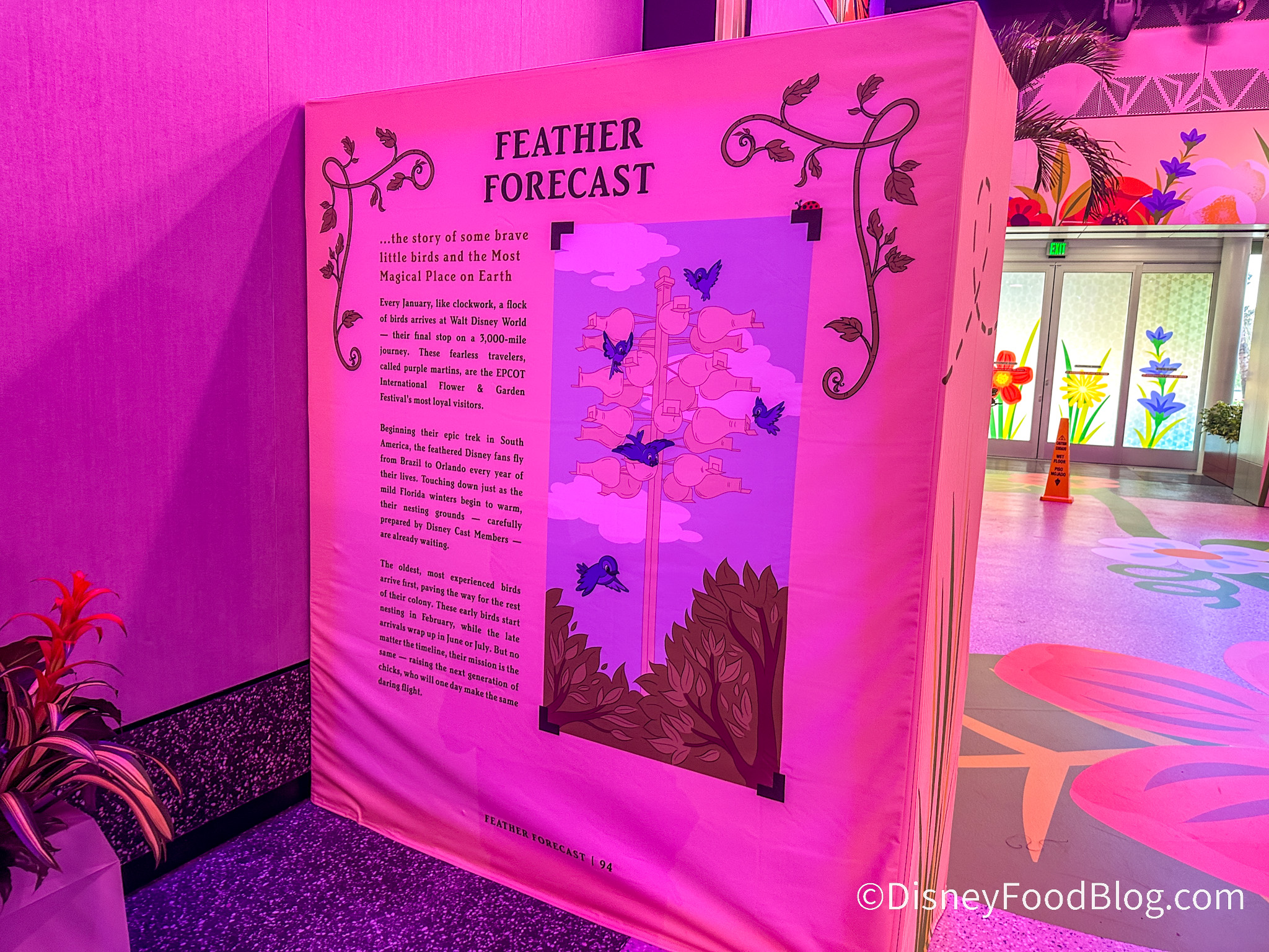 We even spotted some information about the purple martins. These birds travel 3,000 miles to Disney World every January. The birds start nesting in February to be able to raise the next generation of birds. You can even spot the purple martins home while you are walking through EPCOT. They are located near the playground behind Creations Shop.