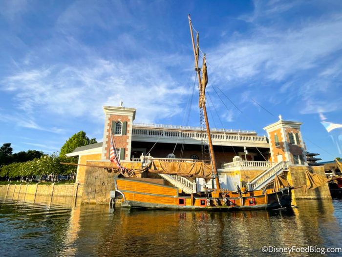 For just over a decade, the ship sat free-floating in the waters near the pavilion until it was heavily damaged by Hurricane Charley in 2004 and removed. Due to a push from Cast Members and Imagineers, the ship was brought back in a newly restored form. In fact, the new ship, designed by BlueDock, isnโt a โshipโ at all, but rather a facade built around a floating dock.