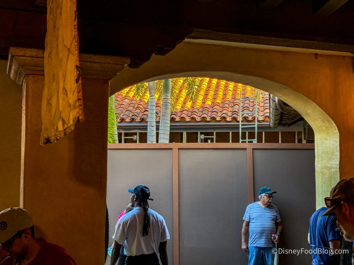 To be specific, it’s been widely assumed that the tavern will occupy both the Pirates League area and part of the Plaza del Sol Caribe gift shop, at least as far as we can tell from construction progress.