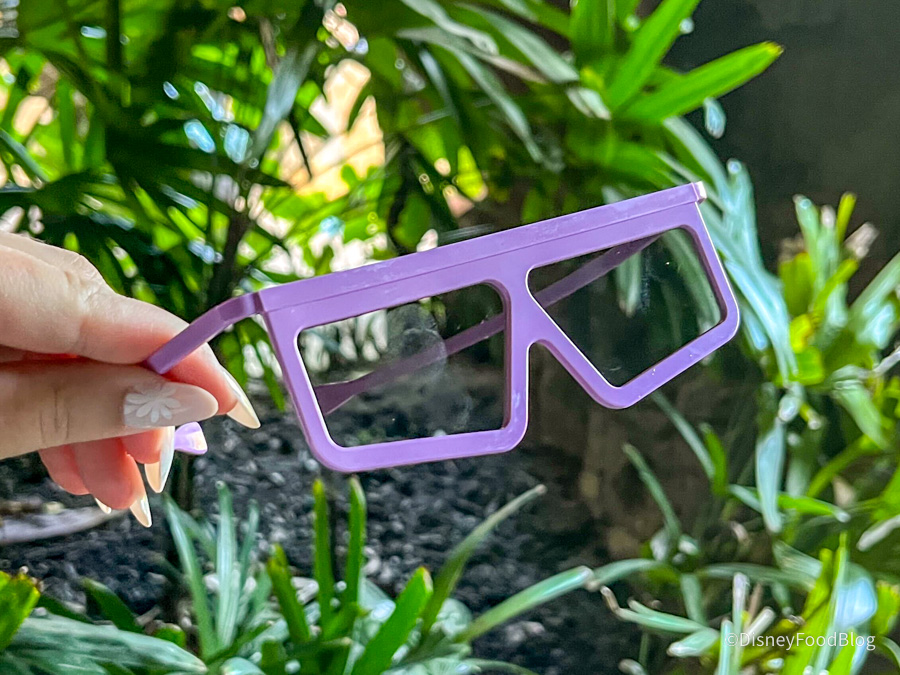 Instead of the iconic, creepy, and crawly, bug-themed 3D glasses you typically wear when seeing this show, we were given these generic, plain ‘ol purple ones!