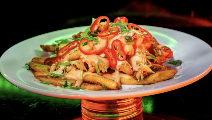 - Smuggler Fries – Black garlic aïoli, Fresno chiles, herbs and pink peppercorns