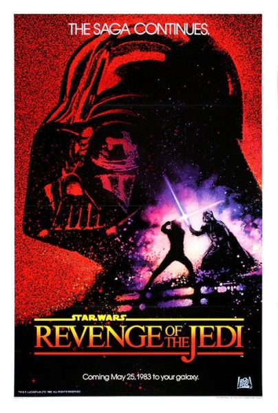 Yep — you read that right. I said Revenge of the Jedi. Now, yes, I know that the movie is actually Return of the Jedi, but that wasn’t always its name. Although Return of the Jedi was officially announced in 1980, movie posters were made with the title Revenge of the Jedi. Don’t believe me? Here’s proof: