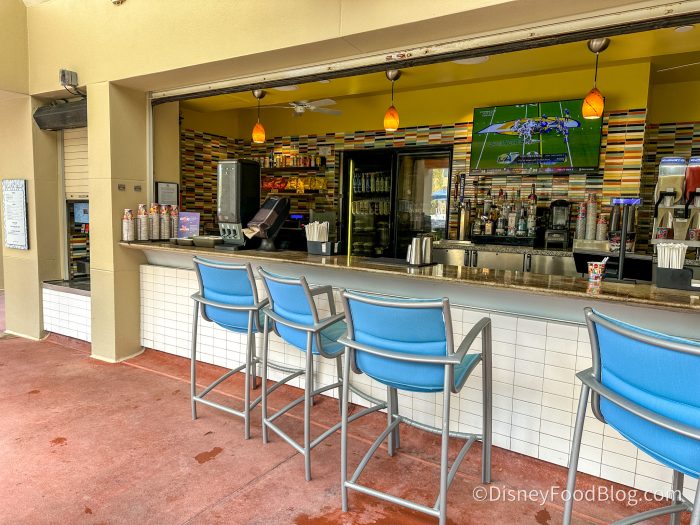 Just a short walk or monorail stop from Magic Kingdom is Disney’s Contemporary Resort, which has amazing meal options like Steakhouse 71 (home to one of our favorite brunches) and California Grill (featuring a rooftop patio with fireworks views!). But we’re not here to talk about those popular restaurants today. Instead, we’re visiting a hidden gem at Bay Lake Tower — the Cove Bar at the pool!
