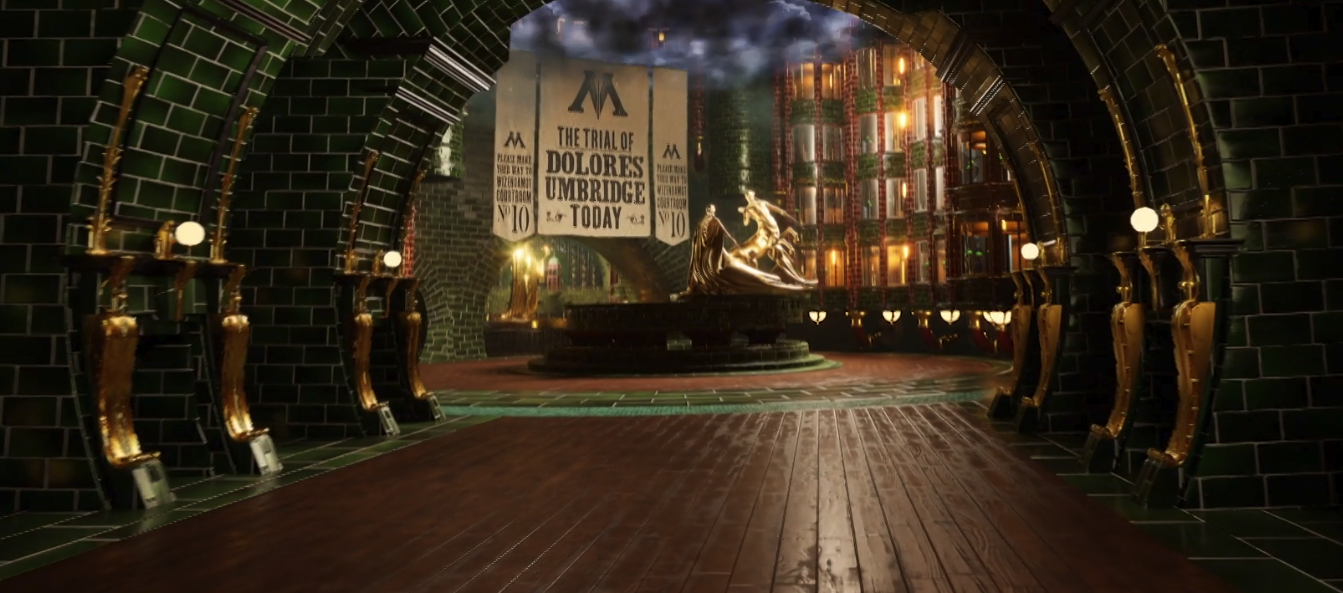 Before you experience Harry Potter and the Battle at the Ministry, you’ll travel by the Floo Network (via the Métro-Floo) from wizarding Paris in the 1920s to the British Ministry of Magic set in the 1990s for the trial of Dolores Umbridge.