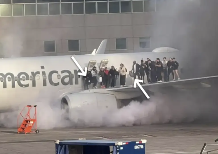 According to Business Insider, an American Airlines jet recently caught fire shortly after landing at the Denver airport. Everyone seemed to have evacuated just fine, with 12 of the 172 passengers on board getting sent to the hospital with minor injuries. A photo caught the evacuated passengers standing on the wing of the plane, with their bags in their hands.