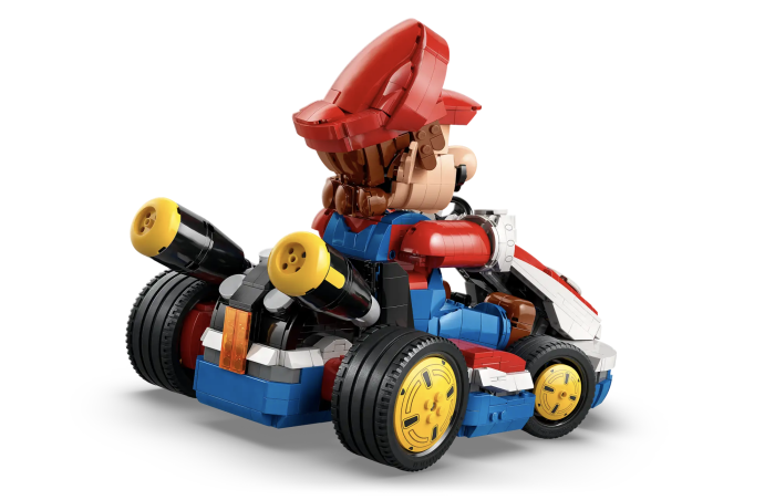The LEGO set features Mario driving his standard kart! For any gamers out there, you may have recognized that the kart Mario is driving is the same one from Mario Kart 8.