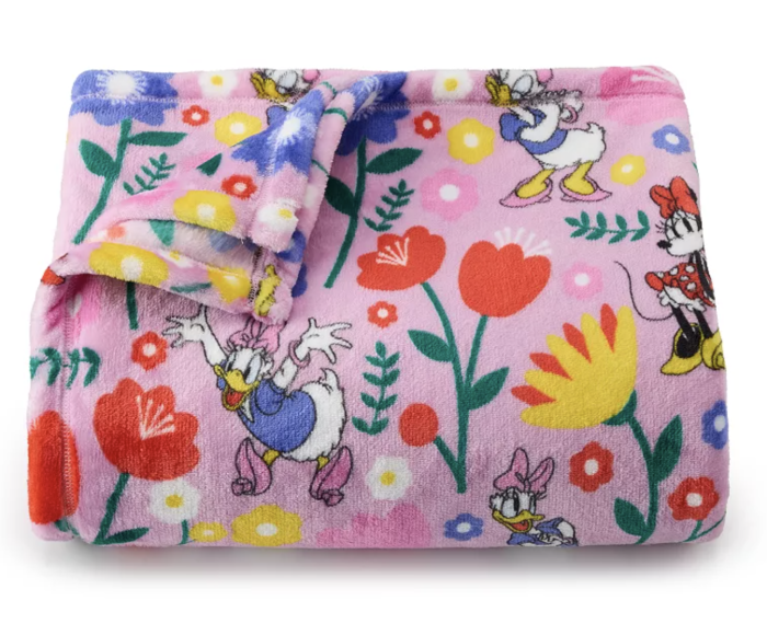 Keep yourself warm and cozy with this Minnie Mouse & Daisy Duck Blanket! The colors and pattern remind us of peppermint, and we love the vintage design of both Minnie and Daisy in the middle! The phrase “Create your own sunshine” is a cute touch!