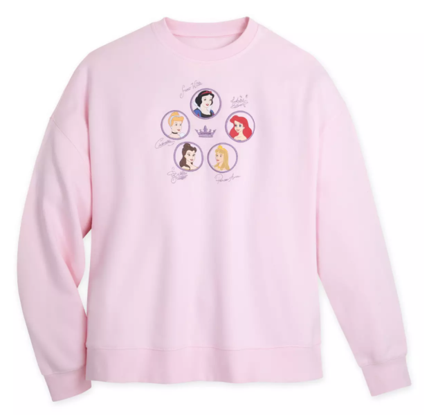 Show off your favorite Disney princess, with this Disney Princess Pullover Sweater! This light pink pullover lets you flex those princesses, and stay comfy. It features Snow White, Ariel, Cinderella, Belle, and Aurora.