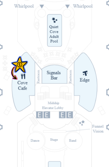 Cove Cafe on the Disney Magic and Disney Wonder is located on Deck 9.