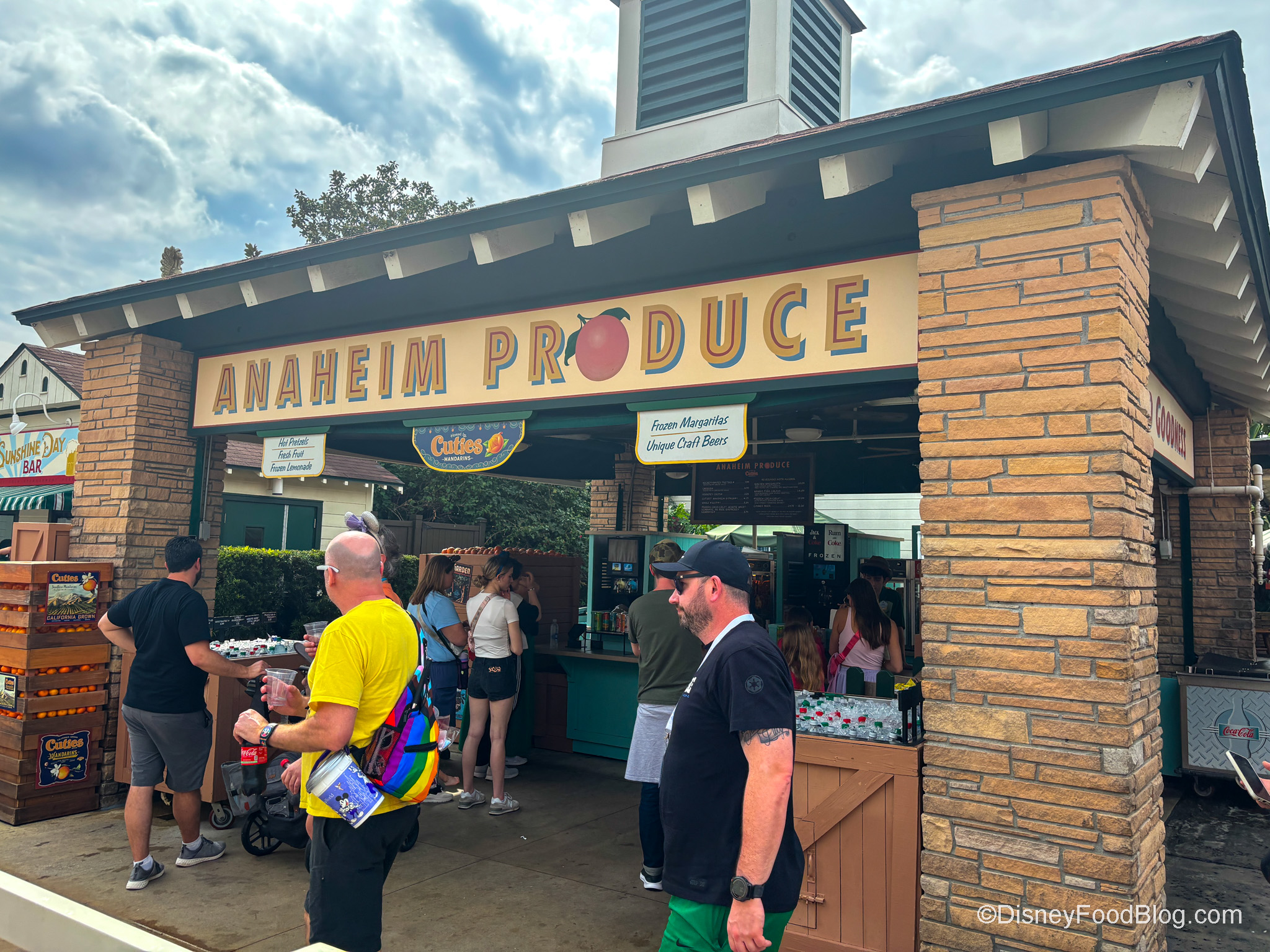 Anaheim Produce is pretty much a basic snack stand where you can grab drinks and snacks. The menu is pretty basic. However, this is one of many places where you can get a Mickey-shaped Pretzel served with Plastic Cheese for $7.99. Now, if you’ve had a Mickey pretzel, you’ll know these are a little denser than other pretzels and they’re nice and salty. It’s not super fresh (it’s been sitting in a warming box all day), but it’s good with that plastic cheese. However, we wouldn’t go out of our way to get a Mickey pretzel here as they are available ALL over the park.