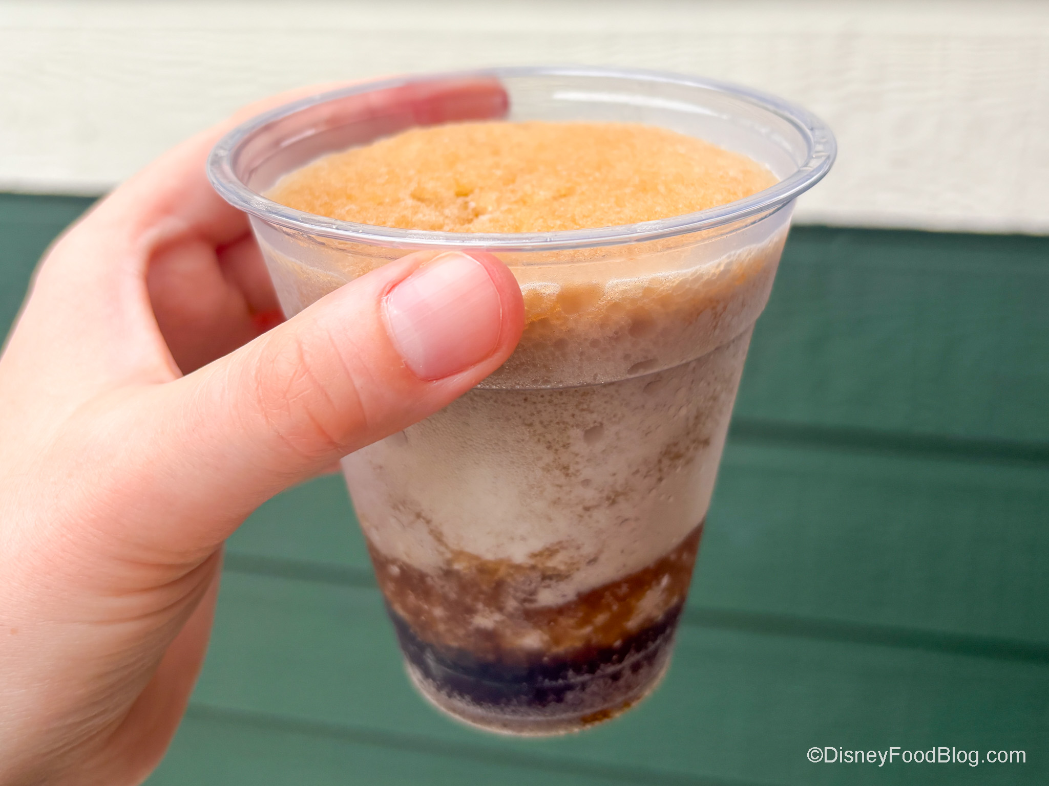 But we’re going to sing the praises of the boozy drink we discovered here. It’s Frozen Coca-Cola with Jack Daniel’s Whiskey for $15.50 and it is a MUST if you like the taste of Jack and Coke. It’s a refreshing take on that classic drink and you definitely get the flavor of the Coke and Jack Daniels. Be sure to give it a good mix, though, before you start drinking it because the alcohol ends up on the bottom. It does melt fast, but it’s still good melted. This is the perfect hot drink for a cold day.