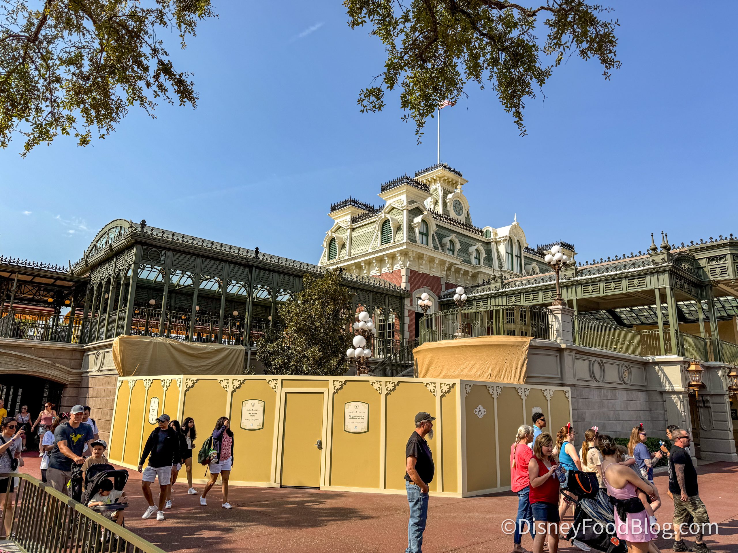 Starting with some ongoing projects, the Main Street, U.S.A. station for the Walt Disney World Railroad has been undergoing refurbishment for a while. It seems to be ever-changing as walls go up and come down. The good news is that the railroad is still operating during the refurbishment. It just may not look as pretty as it does without the walls.