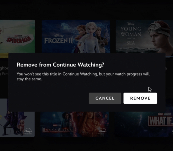 The second option is to go into the show profile, find the subtraction button, and select it. Disney will prompt you to confirm the removal. Don’t worry, though! Even if you remove it from your queue, your progress won’t be deleted, so you can pick up where you left off later.