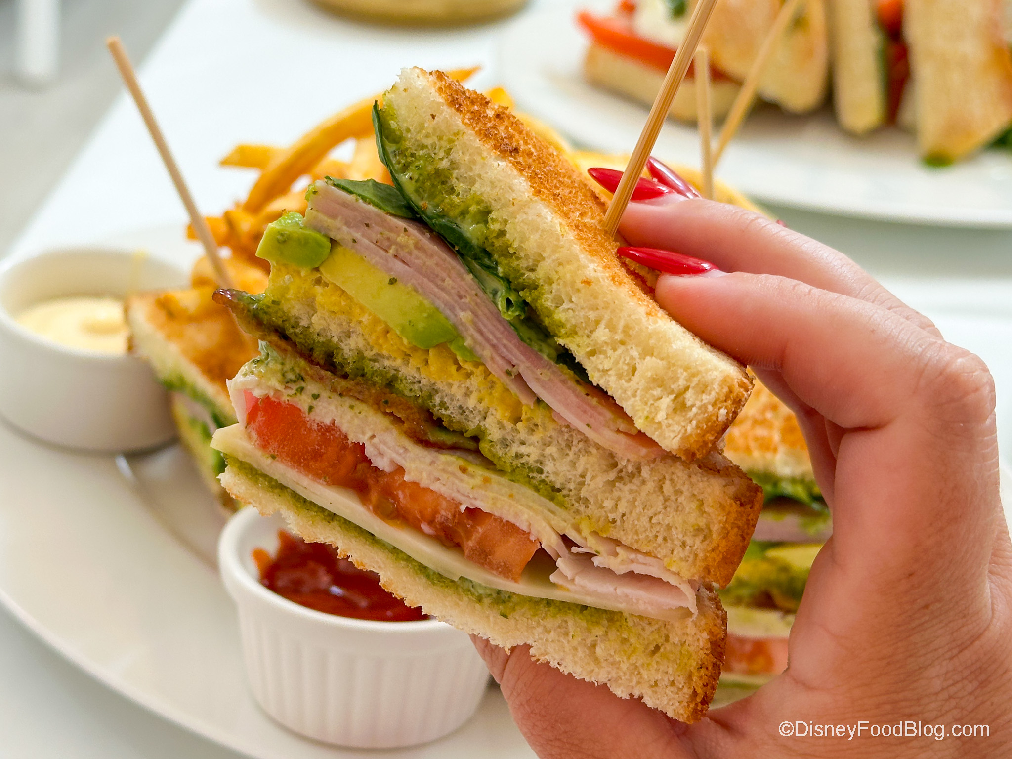 Another new item that’s SURE to fill you up is the 12-Layer Club Sandwich for $28, made with French ham, avocado, fresh tomato, crisp smoked bacon, oven-roasted turkey, baby spinach, Gruyere cheese, Maille Dijon mustard, and homemade basil aioli and served with pommes frites (gluten-free bread is available for an additional $2). This sandwich is GORGEOUS. This is like the grown-up sandwich of a ham sandwich, so it’s elevated.
