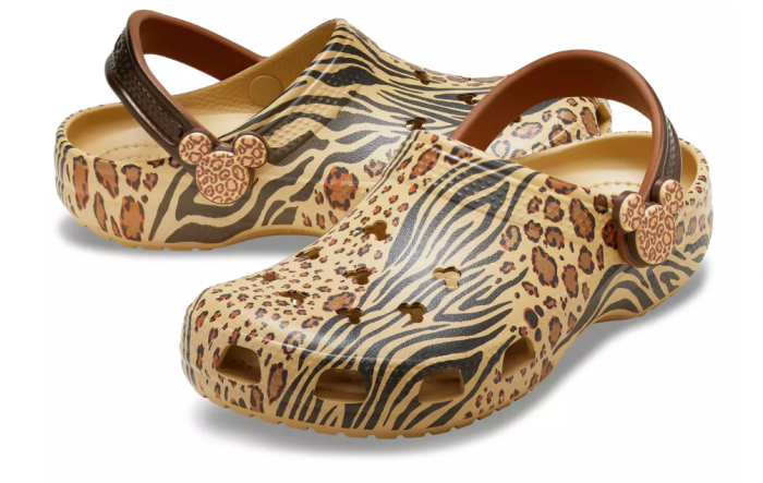 The third pair of Crocs that dropped online are just ASKING to be worn to Animal Kingdom. Covered in at least three different animal prints, you’ll blend right in when you take a safari in these shoes. Like the pink version, they also have Mickey Mouse accents throughout.