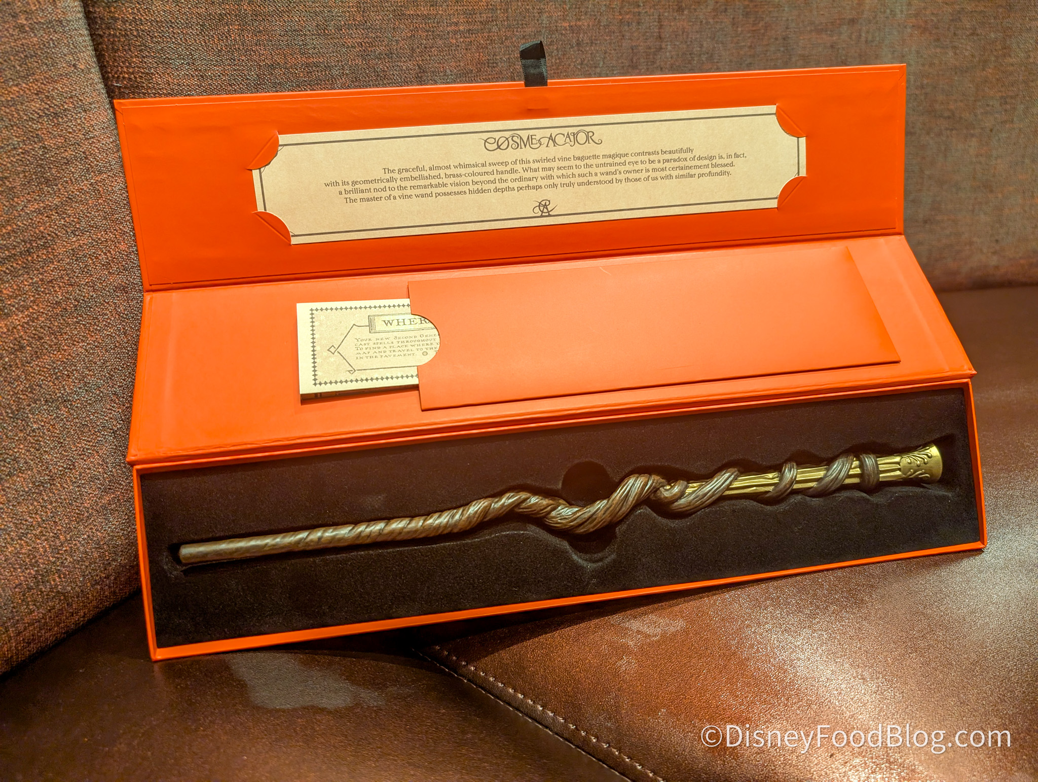In the new land at Epic Universe, The Wizarding World of Harry Potter Ministry of Magic, you’ll be able to pick up a wand from Cosme Acajor Baguettes Magique, the premier Parisian wand shop. A whole new collection of wands was released for this shop!