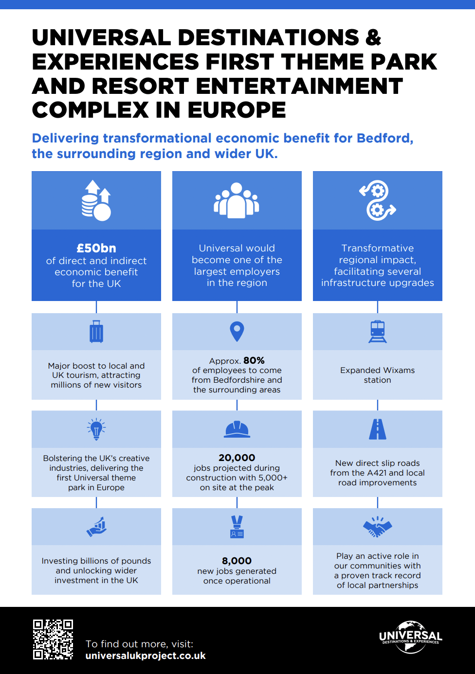 Universal also stresses that if approved, this new park will have a significant impact on both the Bedford and United Kingdom economy by helping grow the creative arts and tourism industries. The park is projected to generate “nearly £50 billion of economic benefit for the UK and create thousands of new, high-quality jobs. At opening, the theme park would be one of the largest employers in the region, with approximately 80% of employees expected to come from Bedford, Central Bedfordshire, Luton & Milton Keynes, with many more communities benefiting from apprenticeships, training, and educational opportunities.”